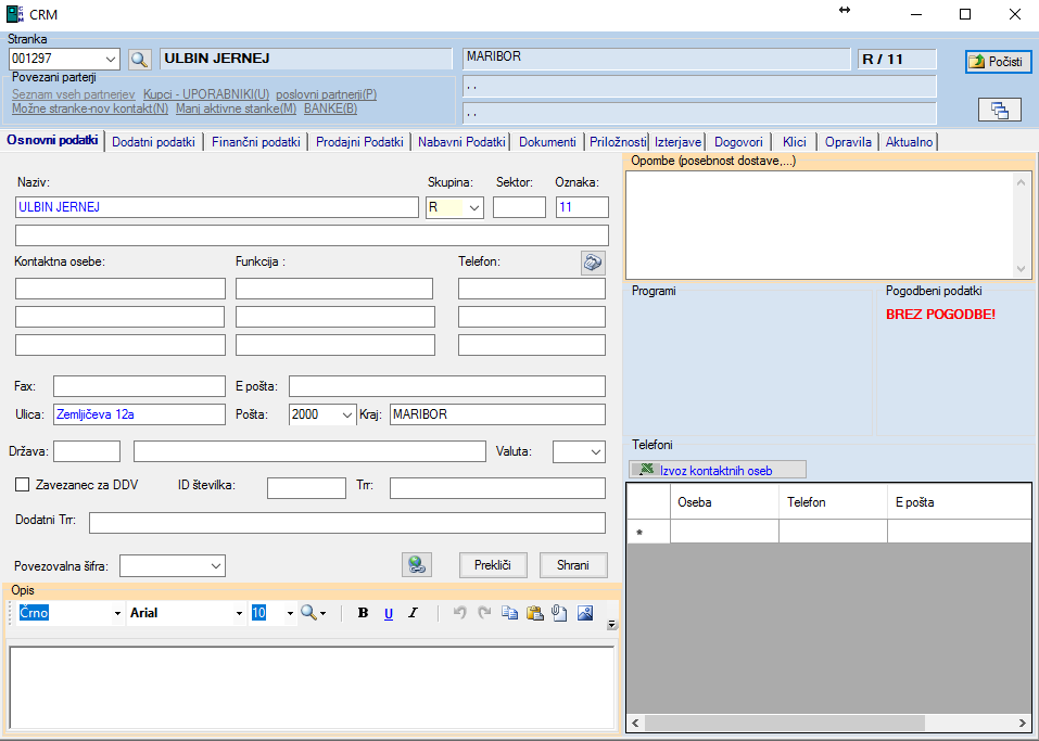 Ko izberete stranko, imate na dlani vse njene podatke :